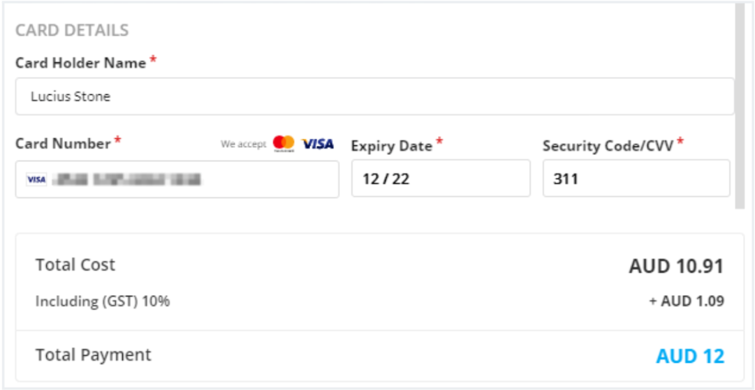 Step 9: Enter your billing and card details. This information is required to process the initial payment and to ensure smooth monthly renewals of the purchased phone number. Additionally, any SMS credit purchases made for the number will be deducted from this payment method automatically.