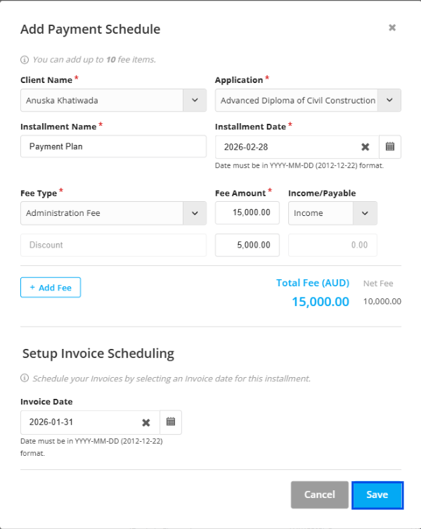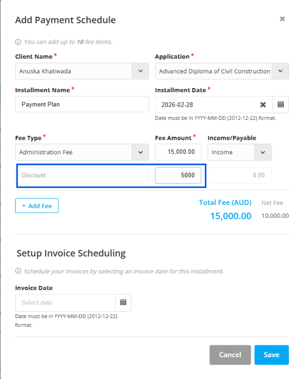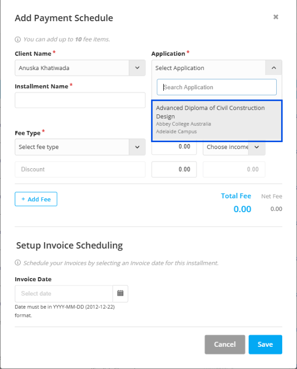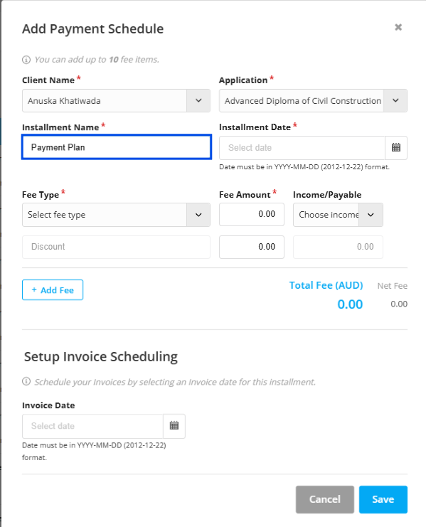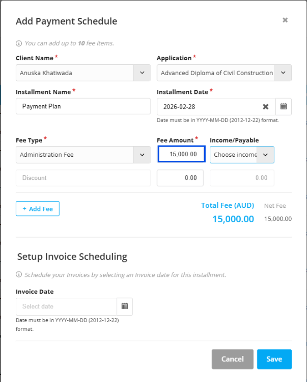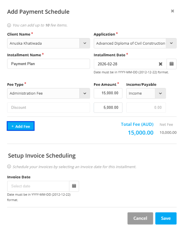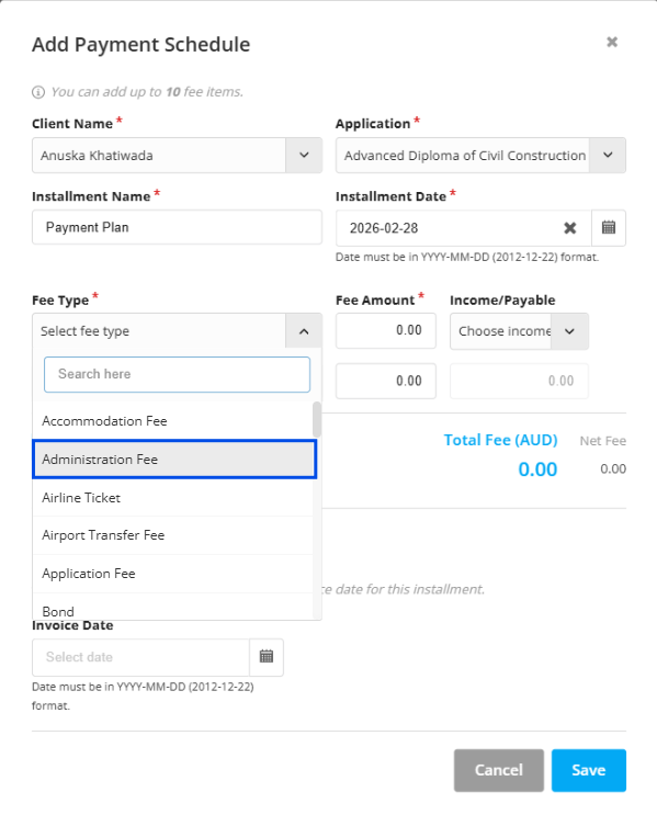 Step 12: And you can also add multiple lines of fee type as well. For this select Add fee tab.