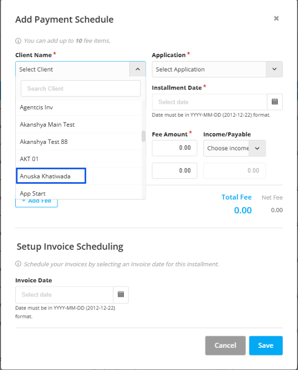 Step 4: Select the client name from the dropdown.