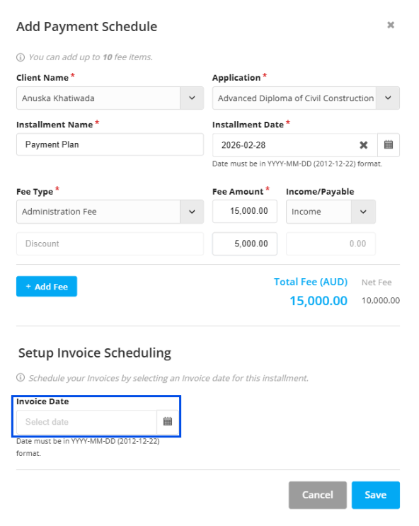 Step 13: To set up auto invoicing, select the invoice date.