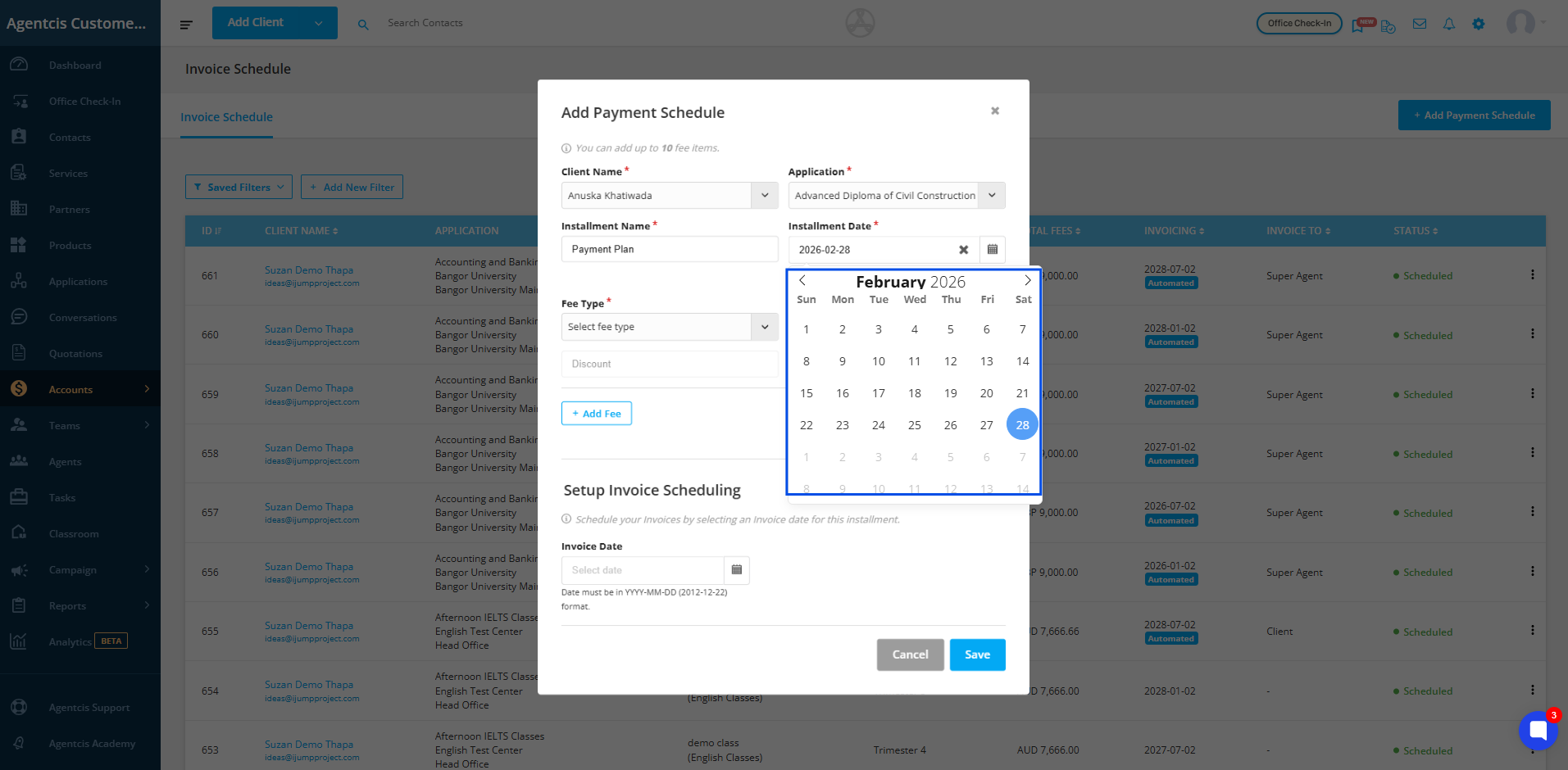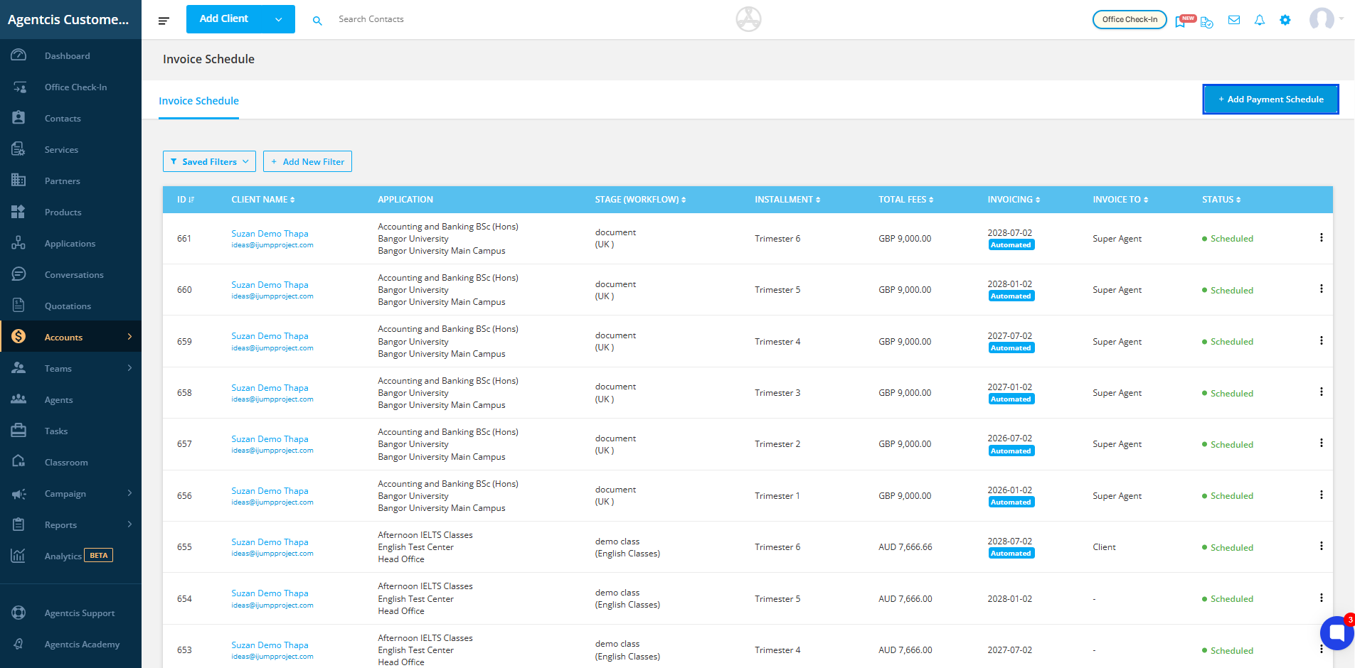 To create payment schedule from account section, follow the following steps: