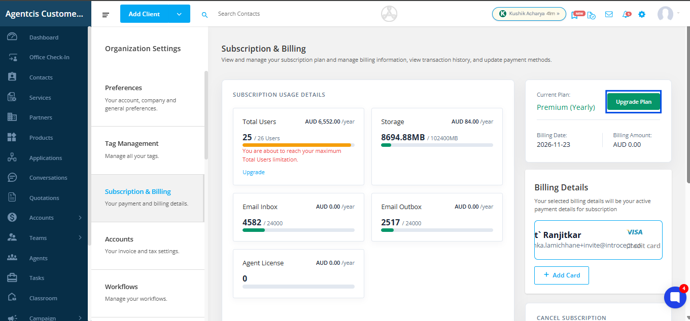 If you’ve reached the user limit and want to invite more users, you can upgrade your subscription, and if certain users are no longer with your organization, you can reduce the number of subscriptions. Managing this at your own end is important as it gives you flexibility to make changes instantly, control costs by paying only for active users, and save time without relying on support.