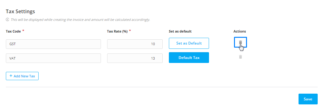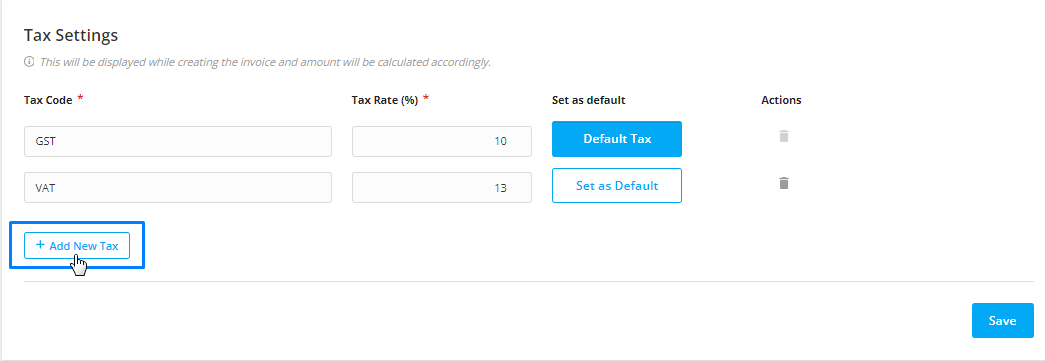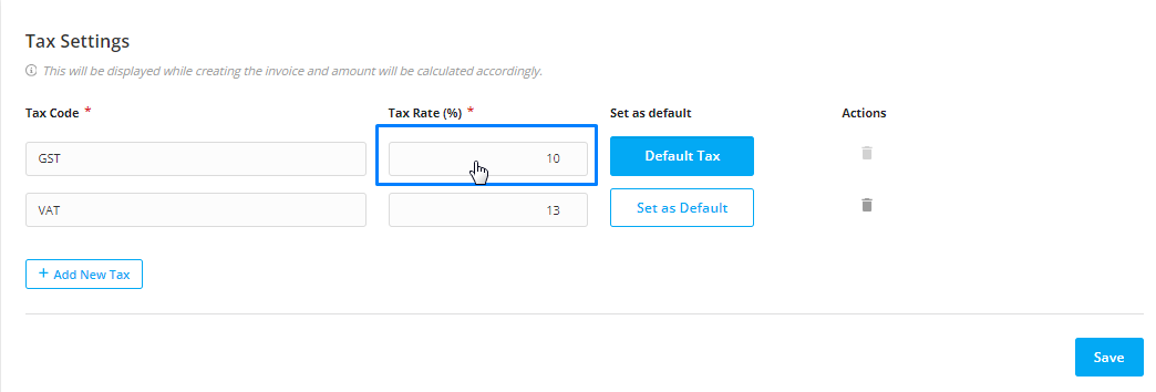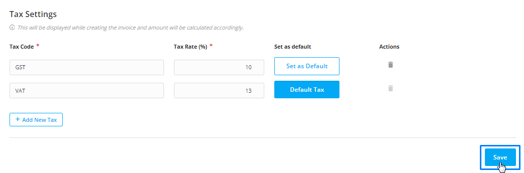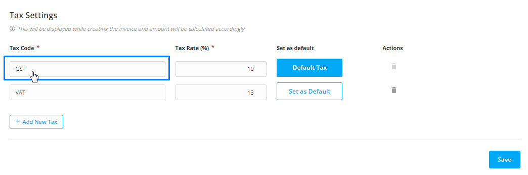 Step 3: Here you can add the tax codes such as GST, VAT and so on.