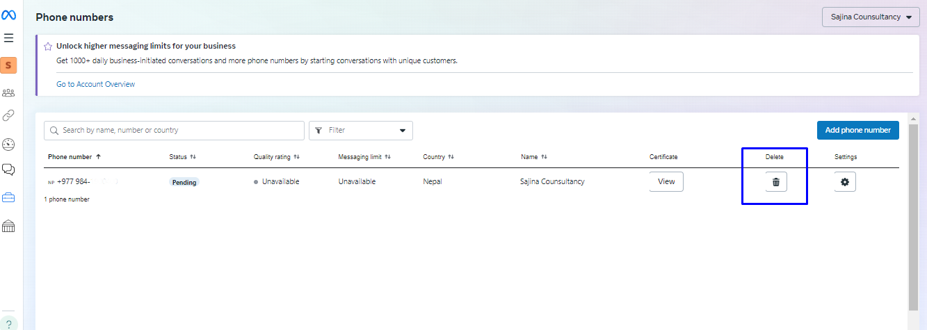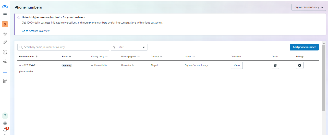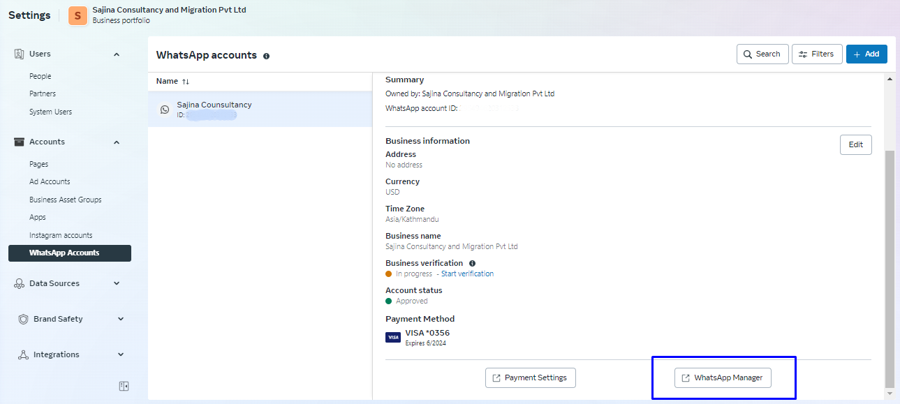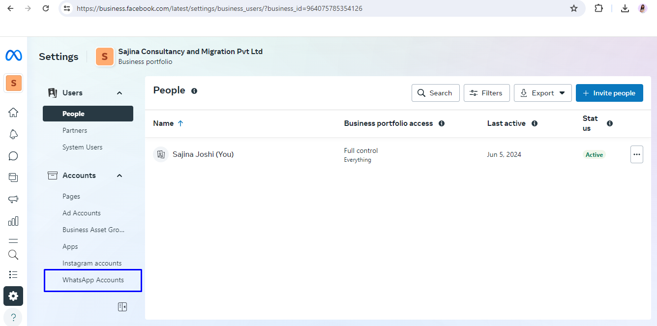 Step 2: Click on WhatsApp Accounts under the Accounts section.