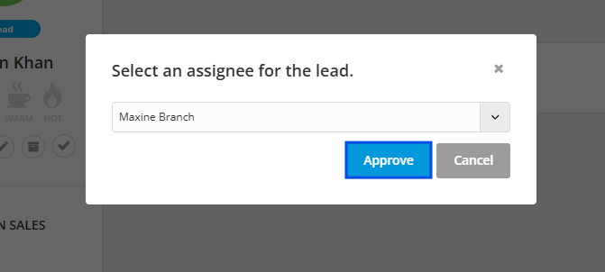Step 3: Assign the Lead to one of your team members by selecting the user from the dropdown. The user will be notified once the lead is assigned if the system notification and email notification have been set accordingly.
