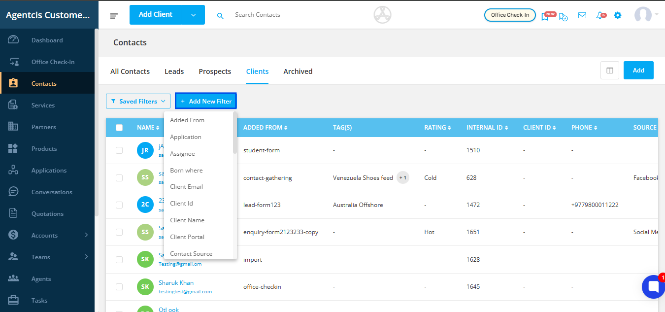 Here are some filter options we provide in Agentcis: