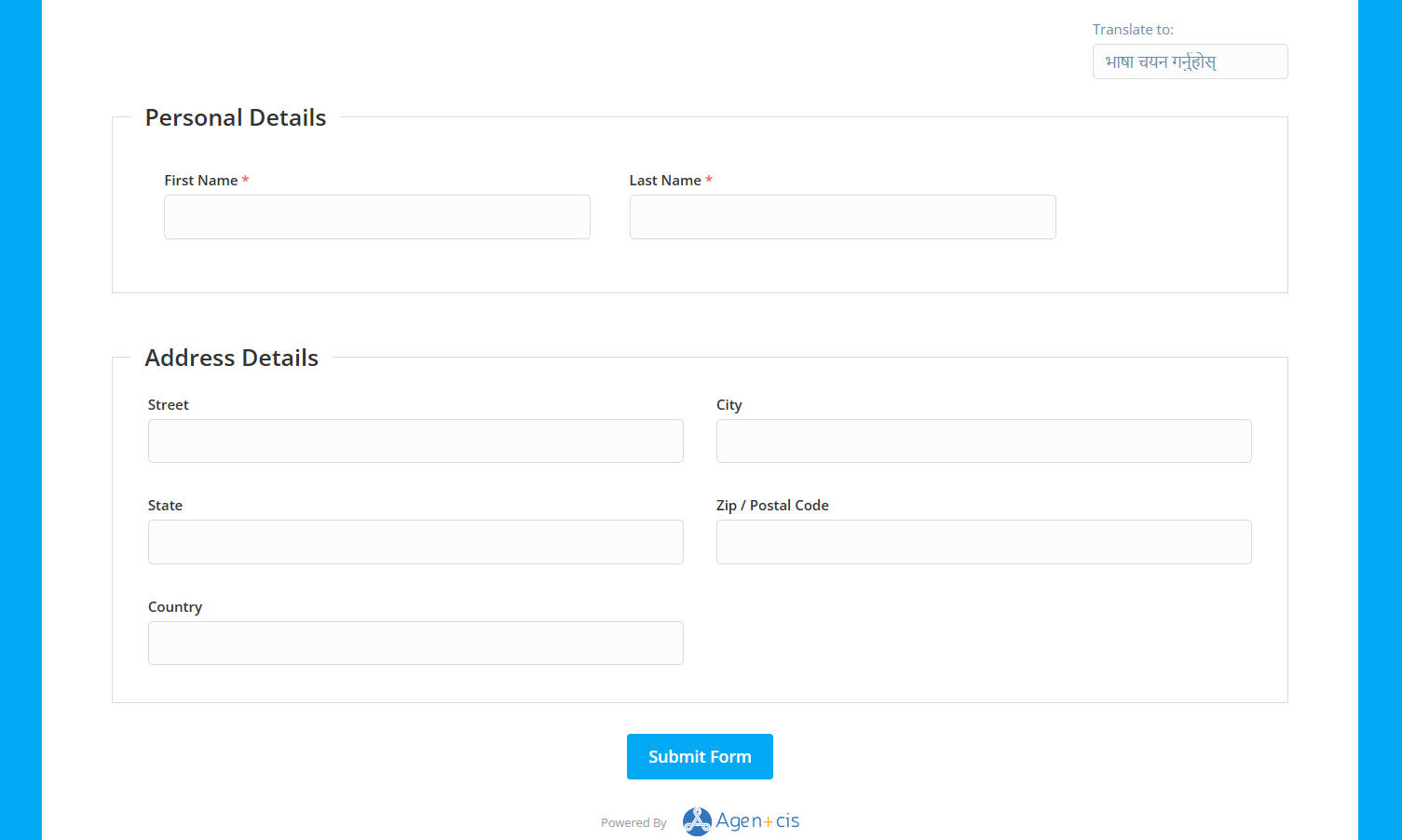 E.g. For To acquire the information of student’s addresses, all the fields of the address such as Street, City, State, Postal Code Country etc. are included under the same section name, “ADDRESS DETAILS”. This is to prevent any information mismatch.