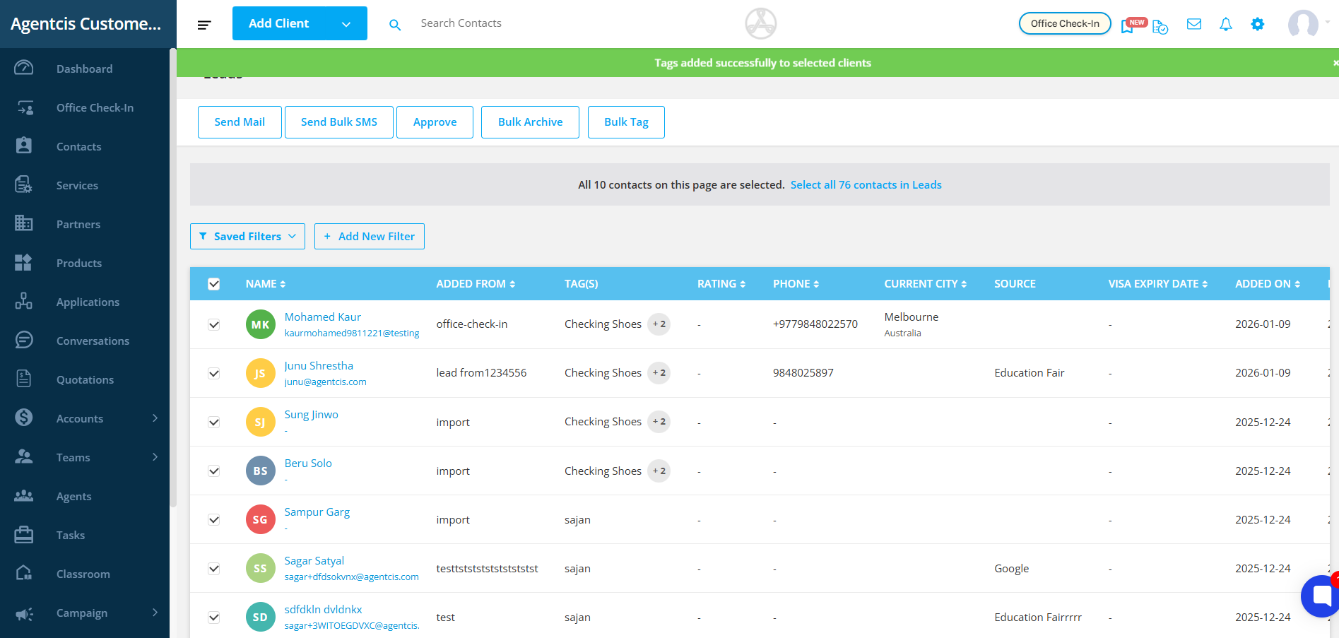 Step 7: A confirmation message saying “Tags added successfully to selected clients” will appear. Now you can easily filter, organize, and manage your contacts using the newly added tags.
