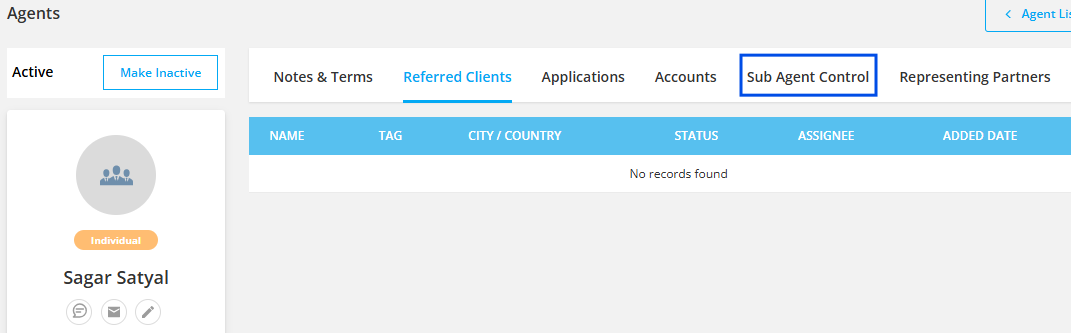 Navigate to the Sub Agent Control tab.