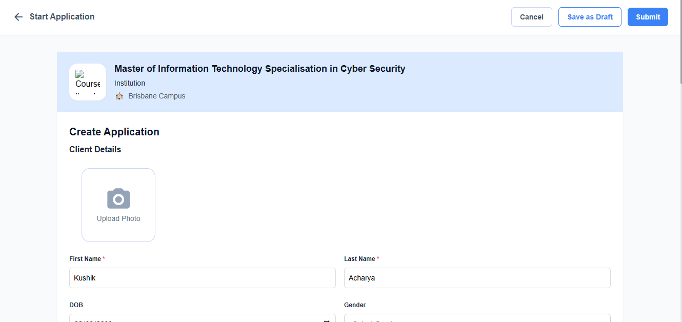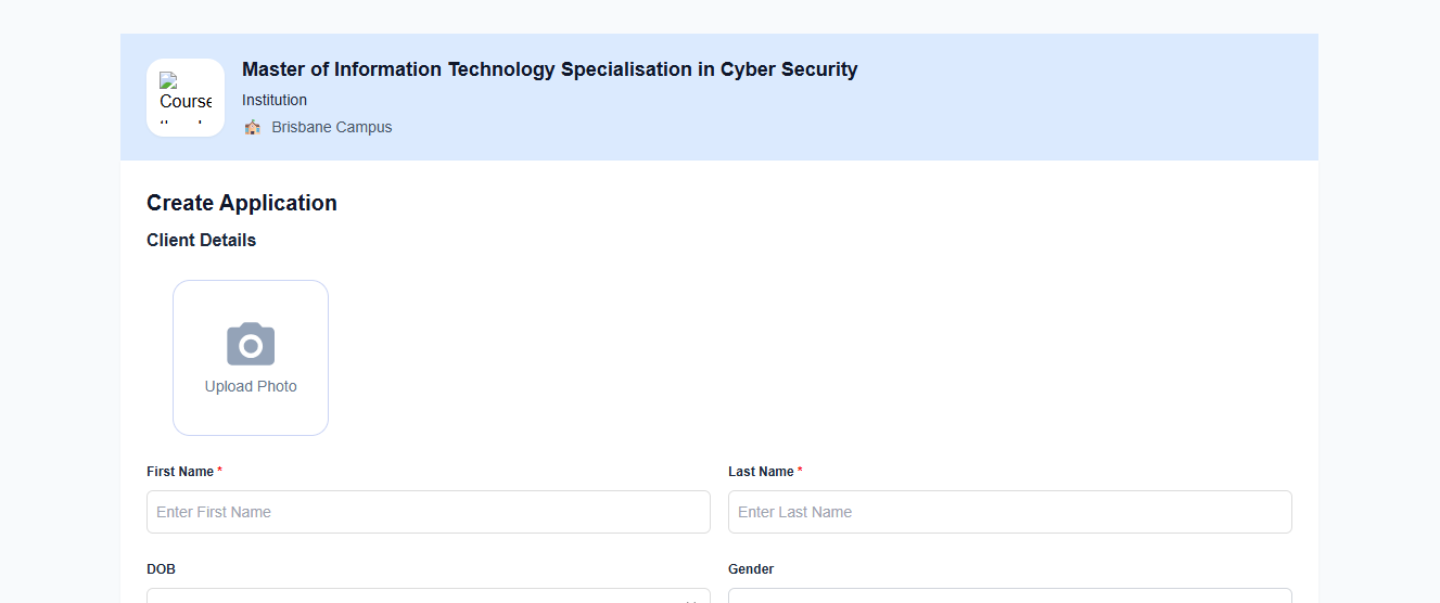 Note: If you select New Student then a form will appear to input the details of the client. You have to fill in all the mandatory details which is asked. Remember that this a system built in form which cannot be customized.