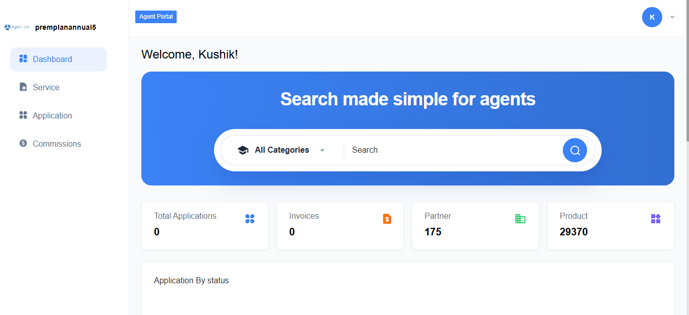 Upon logging in, agents are greeted with the Dashboard, a centralized view that provides key information at a glance: