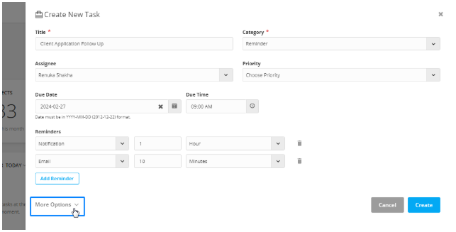 This is ideal for tasks that aren’t linked to any contact, application, or partner—like meetings, admin tasks, or team reminders.